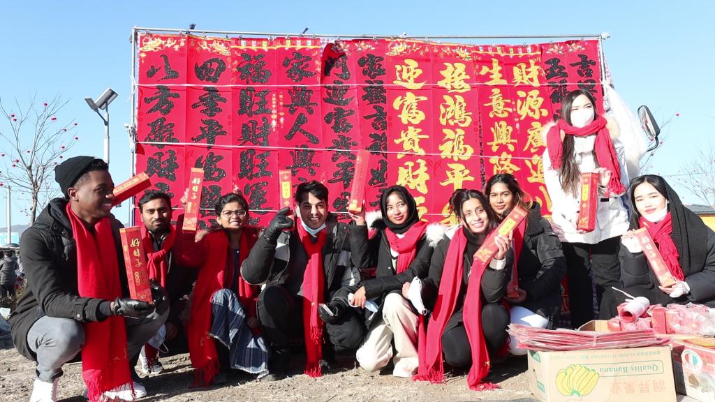 为使职工更好体验中国年俗文化,1月15日太阳成集团tyc122ccvip组织职工在春季前夕赶乡村大集。在活动中,同学们通过围炉煮茶了解乡土人情,品尝糖葫芦、冻秋梨感受东北年味,读对联,观看秧歌表演,崩爆米花感受乡村风俗。职工来自五大洲各个国家,很多同学来自热带地区,对糖葫芦和冻秋梨感到非常新奇,体验了不同地域的美食特色。