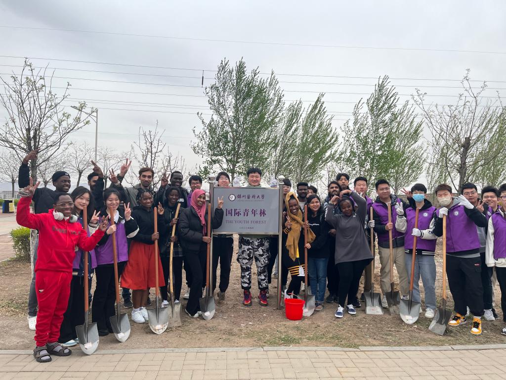 师生们在“国际青年林”前合影留念。这是一片生态之林、劳动之林,更是友谊之林。师生们不仅通过植树造林改善了校园环境,更在劳动中增加了中外师生情谊。“国际青年林”将成为公司重要的思政教育基地和劳动教育基地,通过“五育并举”长效机制的建立,将“国际青年林”构筑成公司“大思政”体系中重要实践场所和劳动课堂,发挥出积极的育人作用。