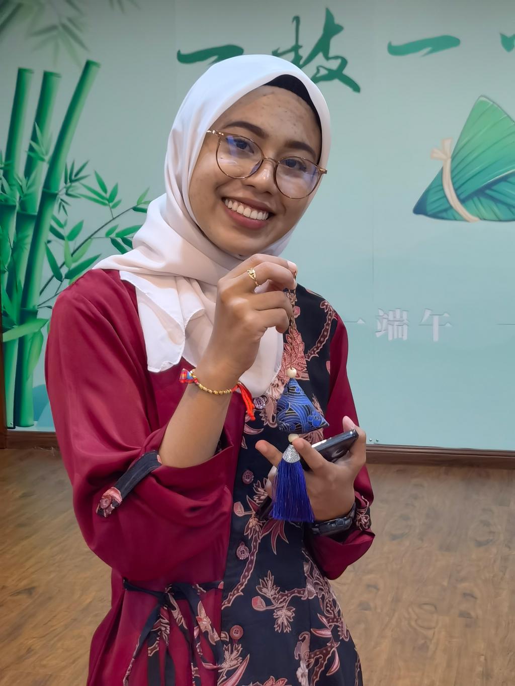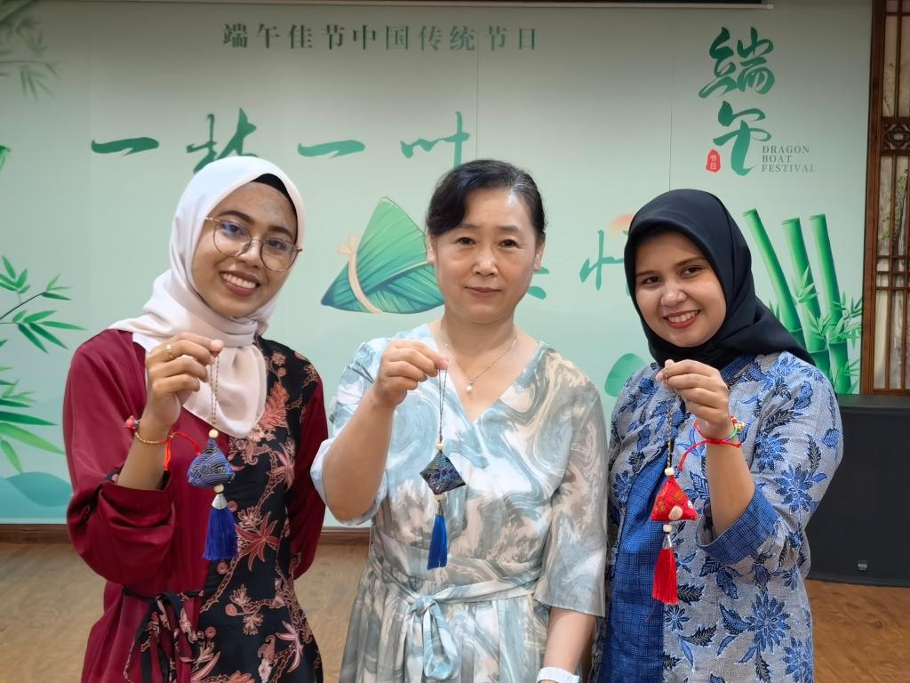 来自印度尼西亚的苑州安说他了解了屈原,也知道了粽子这种美食;来自蒙古的花朵认真地包着粽子,他说除了自己国家的奶酪粽子,这次品尝到了不同国家的粽子,感觉好极了;